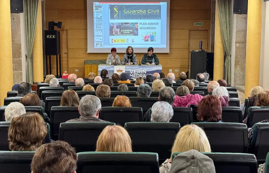 15/10/2024Esta mañá, o Salón de Actos do Concello de Verín acolleu unha charla informativa dirixida ás persoas maiores, organizada pola Garda Civil en colaboración co departamento de Benestar Social do Concello de Verín e o programa «Cara a conquista do Benestar» do Voluntariado Sénior. A formación abarcou desde a seguridade no fogar ata a prevención de fraudes e o uso seguro de Internet.