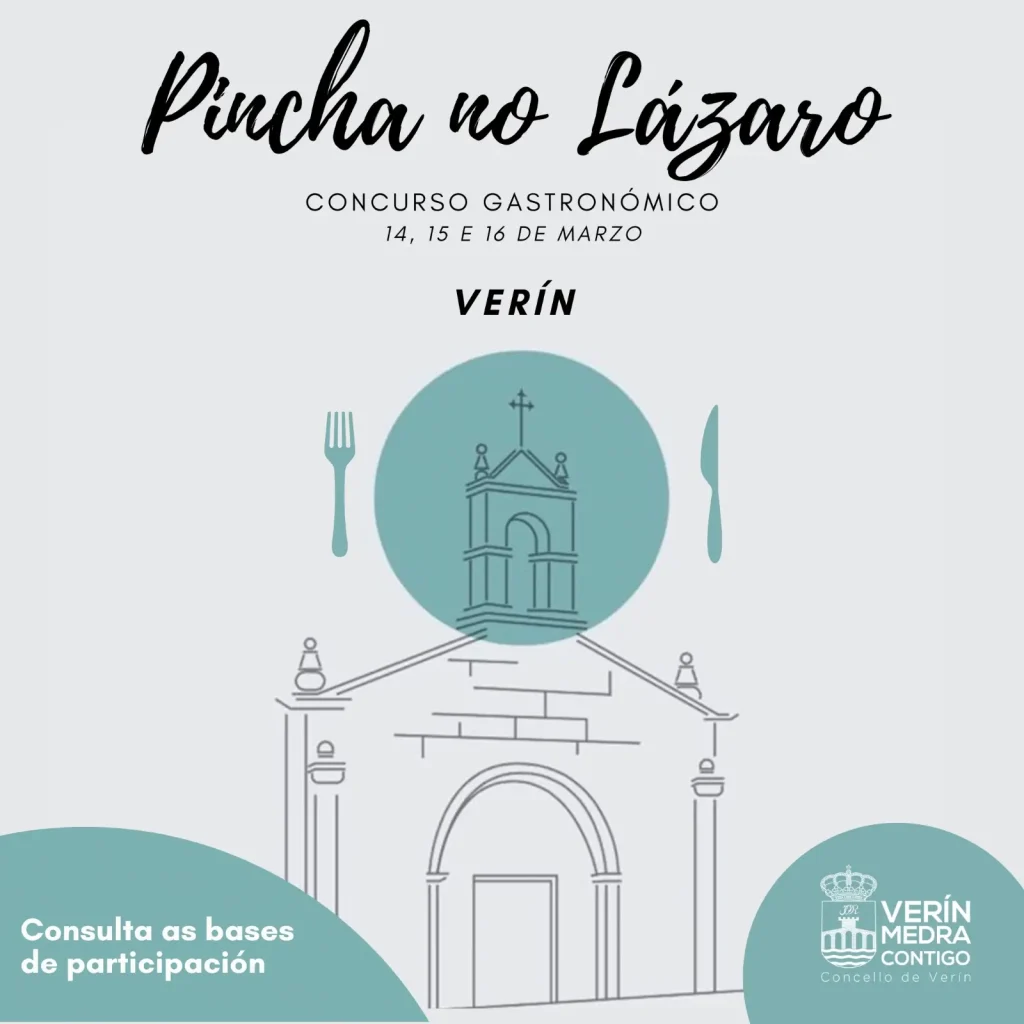 15/03/2024A área de Feiras do Concello de Verín vén de anunciar a primeira edición do concurso gastronómico «Pincha no Lázaro». Do 14 ao 16 de marzo, tanto veciños como visitantes terán a oportunidade de converterse en críticos gastronómicos e elixir o seu pincho favorito. Ademais, os participantes optarán a un bono de 100€ para desfrutar en calquera dos establecementos de hostalería que participen no concurso.